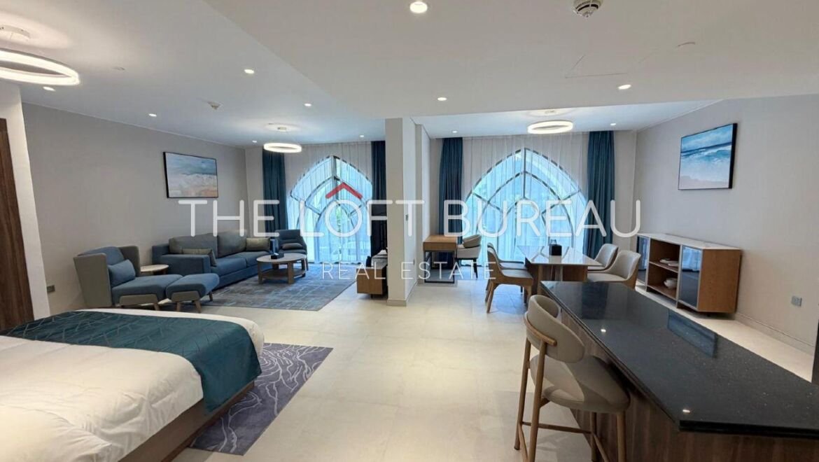 A very big modern furnished studio available for first rent in the prestigious La Plage community at The Pearl. This apartment offers a bright and comfortable layout with large windows, contemporary finishes, and direct access to the beach, ideal for a relaxed coastal lifestyle.