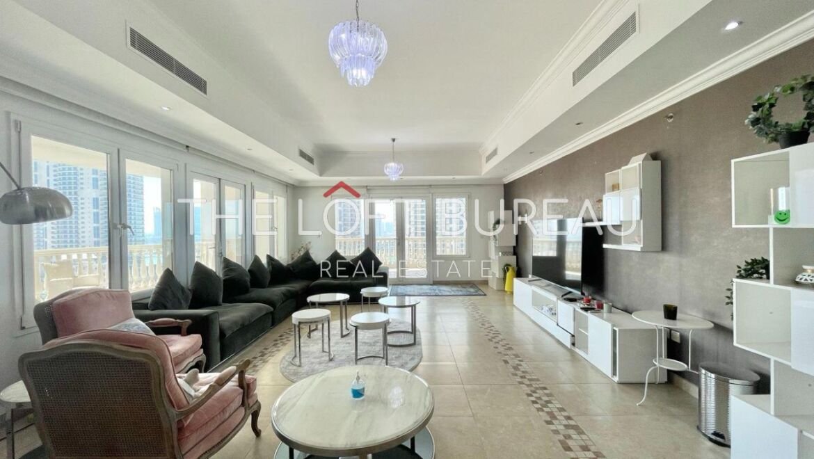 The Loft Bureau Real Estate is proud to offer this bright, very spacious, and well maintained fully-furnished 3 bedroom apartment plus maid for sale in Porto Arabia, The Pearl.